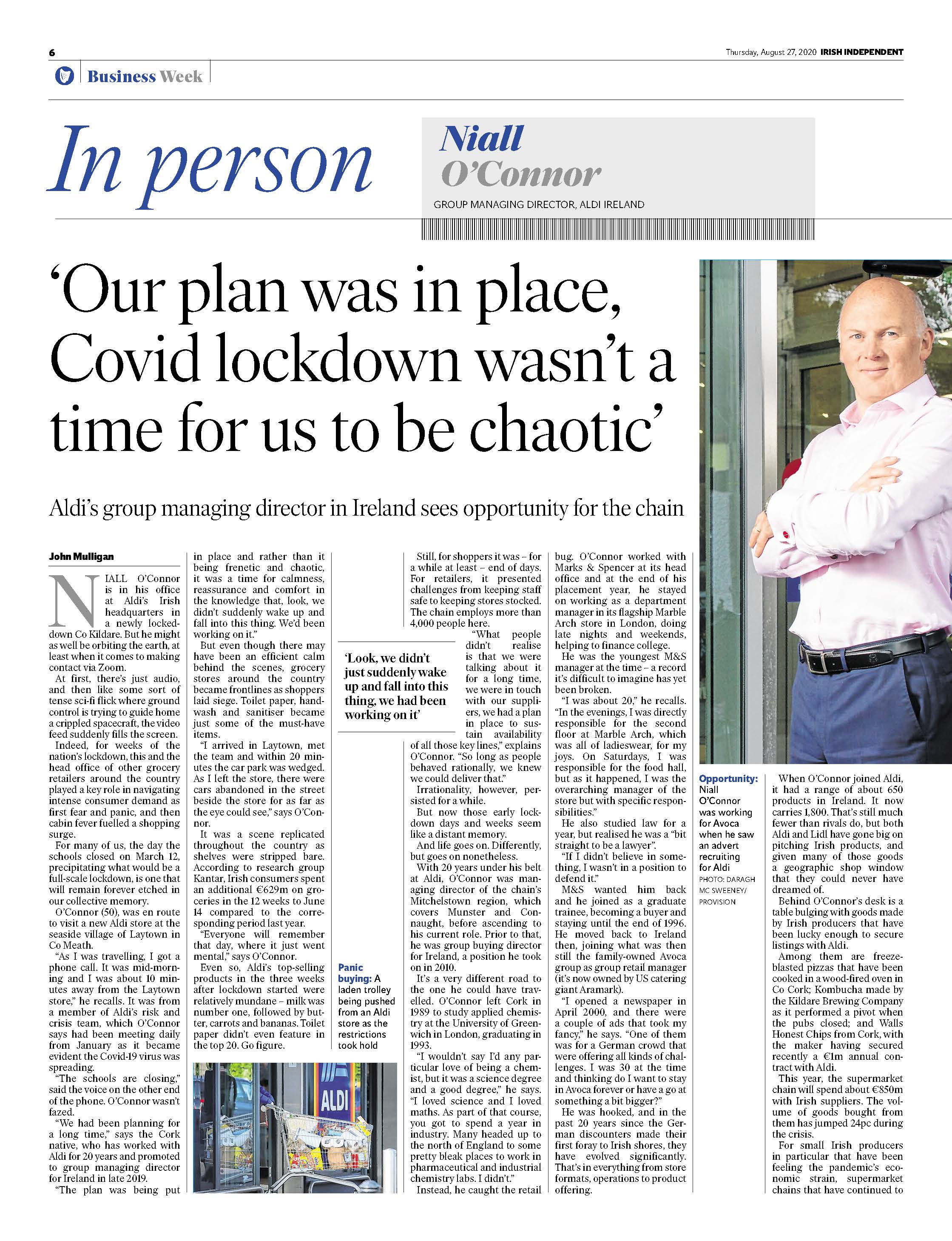 Aldi’s Group Managing Director Niall O’Connor recently spoke to John Mulligan of the Irish Independent about the retail experience of Covid and how Aldi’s plans for significant investment in Ireland continue apace.
